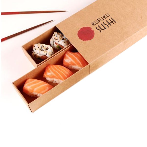 Custom logo disposable biodegradable white kraft paper box for food Sushi takeout packaging
